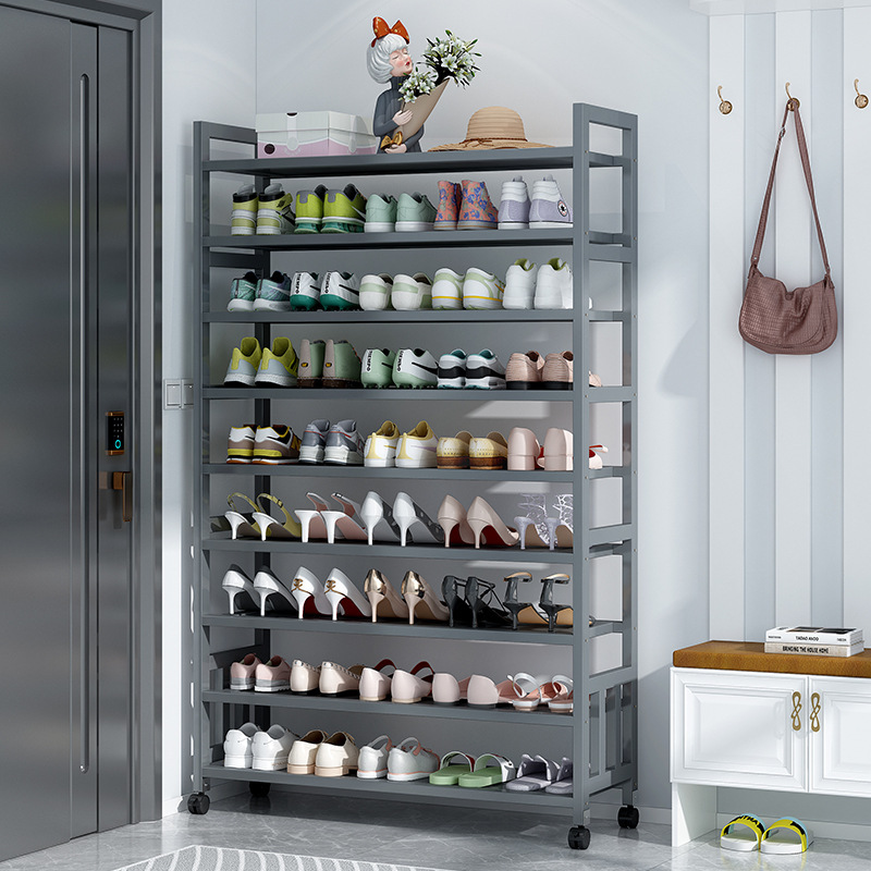 Rak sepatu pintu kecil sempit, rak sepatu ekonomis sederhana untuk rumah, hemat ruang, Kabinet sepatu besi banyak lapisan tahan debu