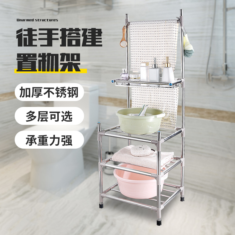 Rak dapur Stainless steel, rak panci lantai multi lapisan, rak penyimpanan wastafel kamar mandi, pemasangan sederhana