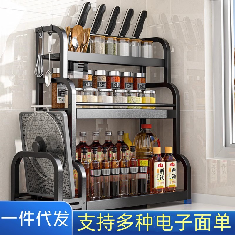 Rak dapur meja bumbu rak baja nirkarat Rumah Tangga bebas lubang rak penyimpanan banyak lapisan pengiriman satu buah