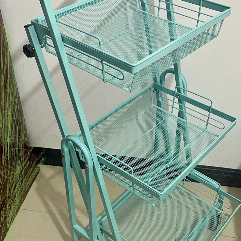 Rak penyimpanan tiga lapis rak penyimpanan langsung dari pabrik rak penyimpanan ruang tamu dapur bergerak keranjang logam grosir