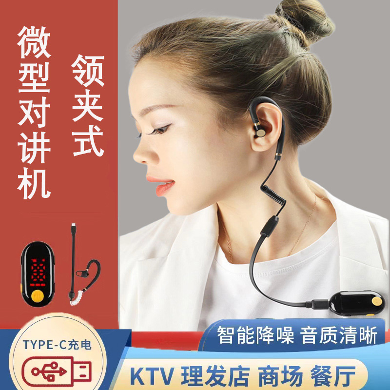 Ear-mount headset kerah walkie-talkie nirkabel mini interkom mesin kecil Hotel KTV rambut salon
