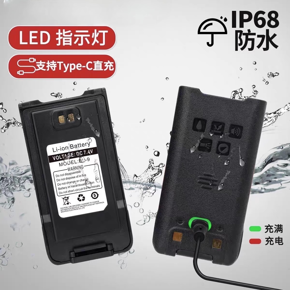 Cocok untuk Motorola walkie-talkie baterai lithium UV-8DR/8R/338D/358 dengan baterai USB tipe-c