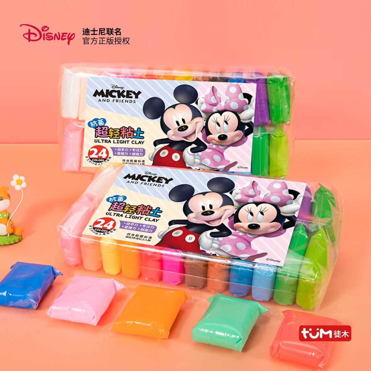 Lianzhong Disney 12 warna 24 warna tas tanah liat super ringan lumpur ruang hadiah lumpur plastik buatan tangan siswa