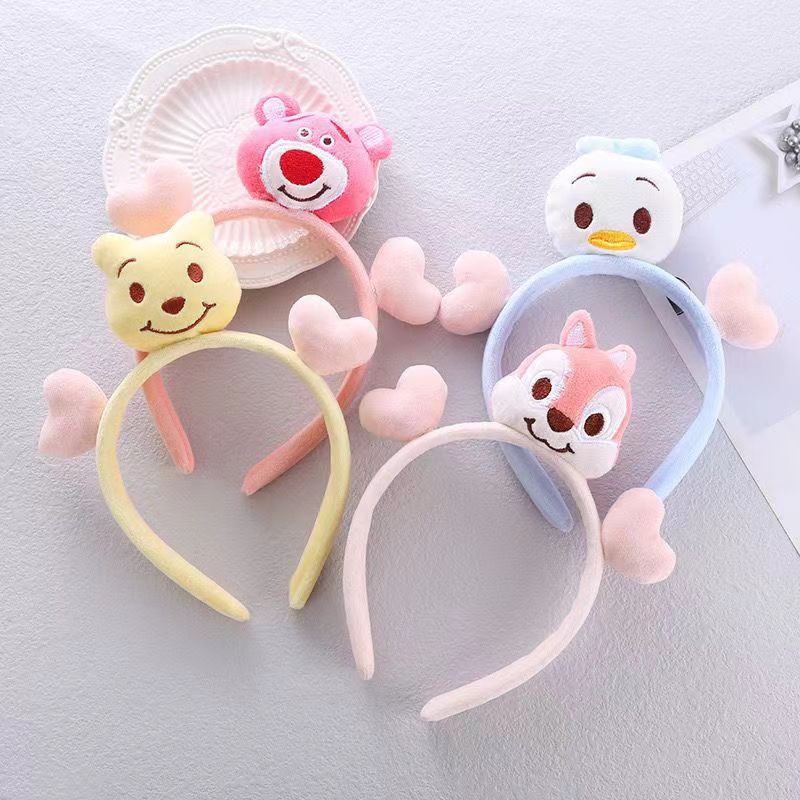 Bando beruang stroberi berkepala ganda, hiasan kepala sangat lucu kartun Donald bebek tupai mencuci wajah foto aktivitas