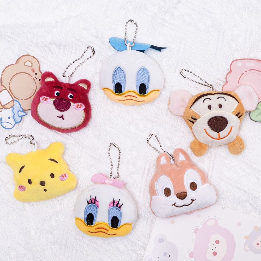 Boneka Kepala Hewan Kartun Liontin Liontin Harimau Berbulu Strawberry Beruang Tupai Bebek Bebek Boneka Hadiah Kecil Tas Ornamen Gantung