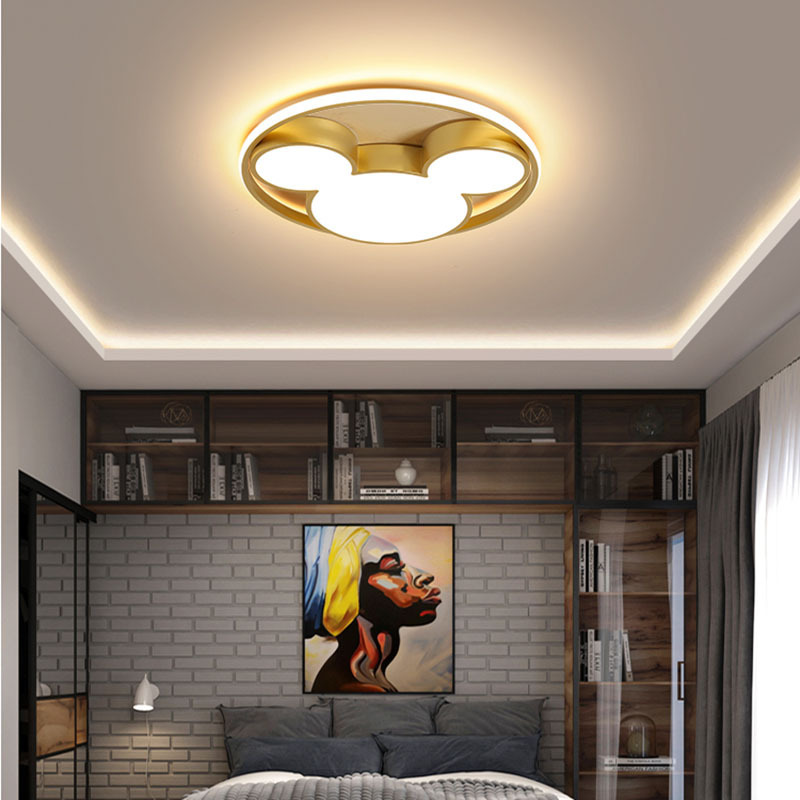Lampu langit-langit kamar tidur, cahaya led kreatif Nordik untuk belajar modern hangat bulat Mickey Mouse