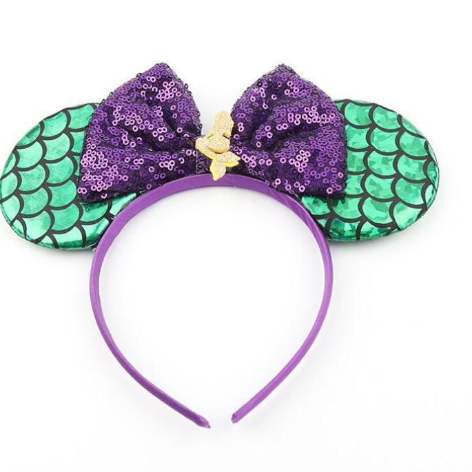 Amazon bando Mickey Putri Duyung, aksesori rambut bando Mickey Mouse ekor ikan, ikat kepala gaun kepala anak-anak