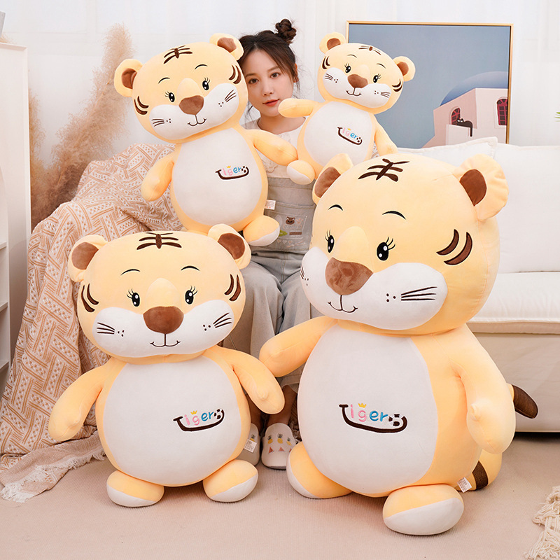 Boneka harimau kartun lucu lembut mainan mewah bantal boneka bantal tidur hadiah Tahun harimau
