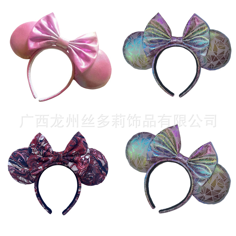 Bando telinga Mickey Mouse anak-anak, ikat kepala bunga buatan lintas batas Eropa dan Amerika, hiasan kepala Mickey Mouse lima