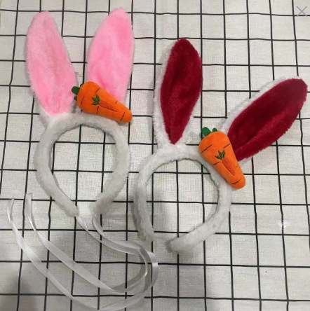 Bando telinga kelinci baru, aksesori rambut, telinga kelinci, tali plus wortel tiga dimensi, mewah, pendek, pesta Paskah, anak-anak