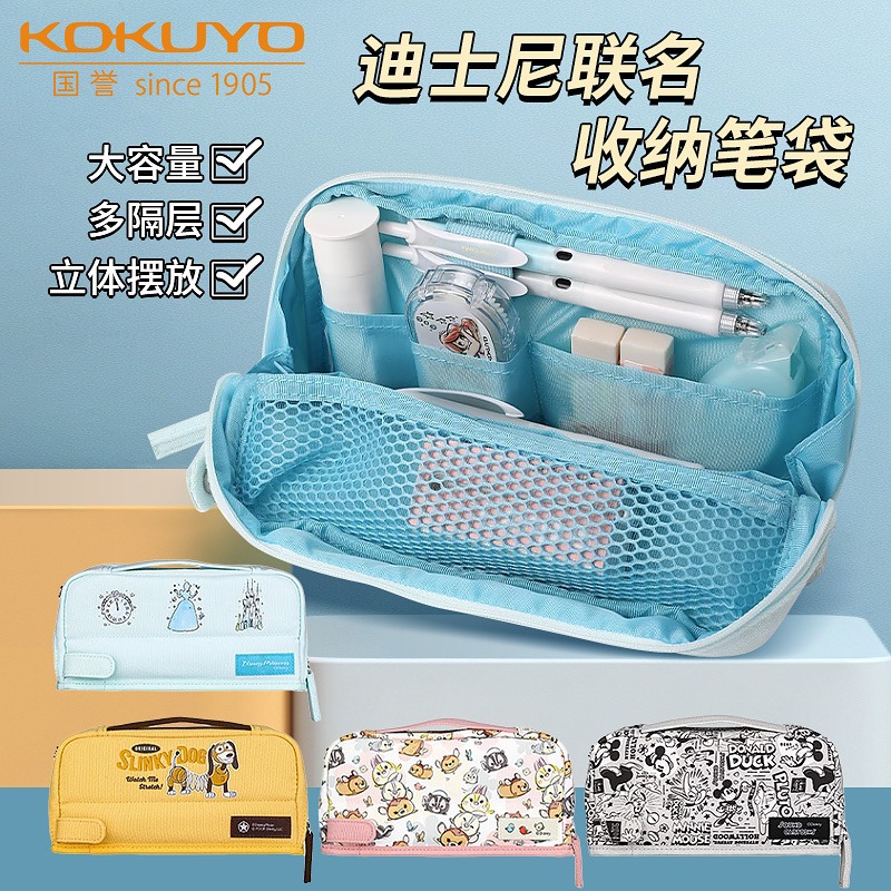 KOKUYO Jepang Guoyu kotak pensil nama gabungan, kotak pensil Mickey Mouse kapasitas besar HACO untuk sekolah menengah dan senior