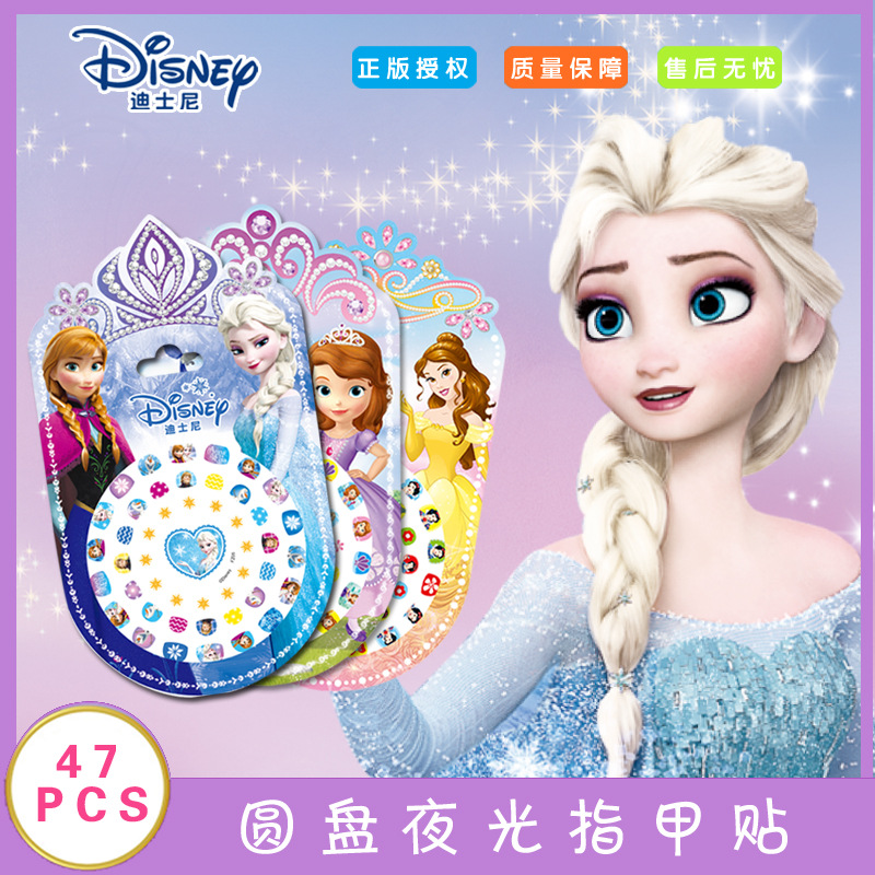Stiker kuku menyala cakram besar asli stiker penuh stiker kartun anak-anak Putri Sophia es dan salju