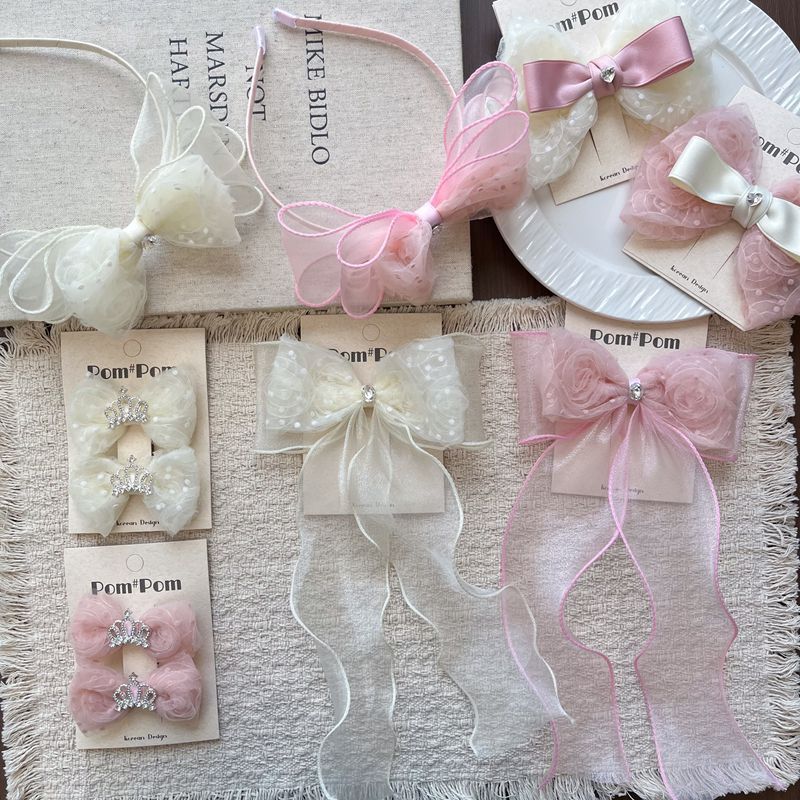 韩版白色蝴蝶结发夹女童百搭飘带头饰儿童后脑勺发卡高级感发饰品