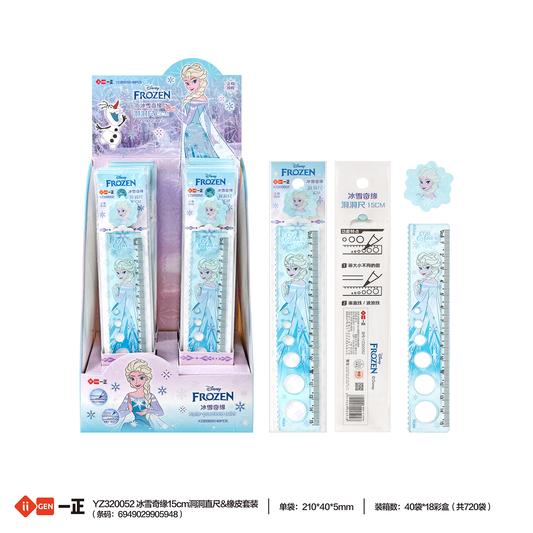 Iigen alat tulis asli Disney Frozen gambar lubang 15cm penggaris lurus dengan penghapus untuk siswa