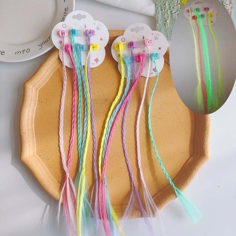 Klip rambut anak-anak perempuan kepang wig performa panggung bercahaya penjepit rambut sambungan sambungan potongan aksesori rambut kepang kotor