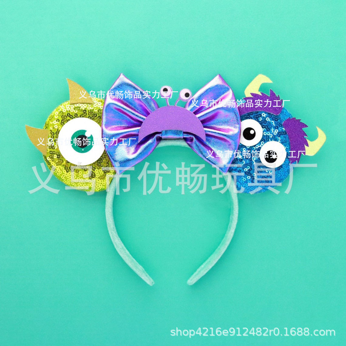 Ikat kepala Mickey mata besar universitas Monster ikat kepala berpayet monster rambut biru hiasan kepala Pesta taman hiburan