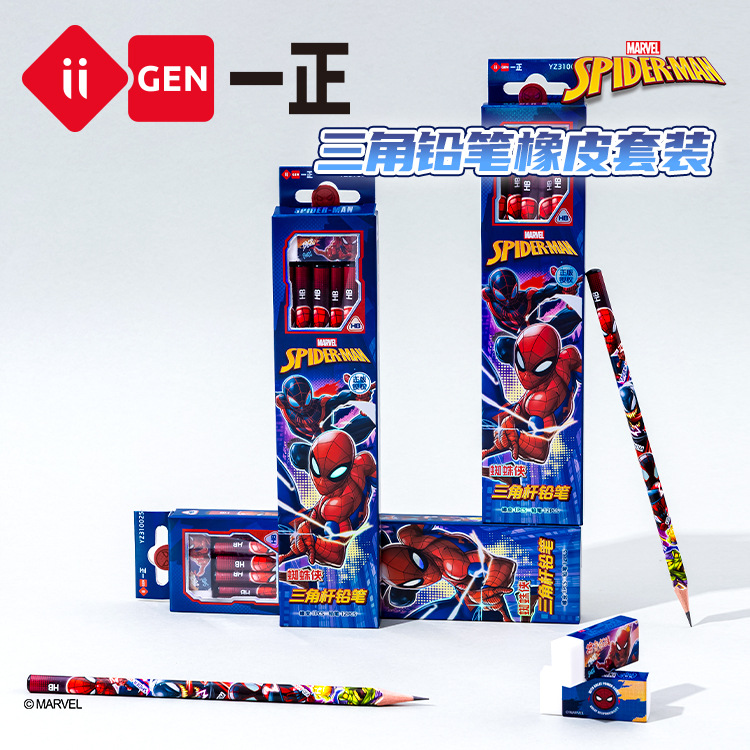 Iigen Alat Tulis Gambar Disney Spider-Man HB Triangle Tiang Pensil Karet Pena Tulis Anak