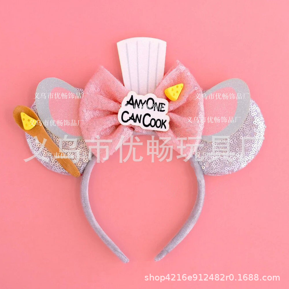 Bando Mickey tema kerincingan dekorasi taman hiburan aksesori rambut pesta bermain peran Remy hiasan kepala