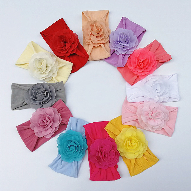 Aksesori kepala anak-anak nilon bunga sifon lembut Eropa dan Amerika bayi tidak melukai rambut kulit ikat kepala lebar wanita grosir