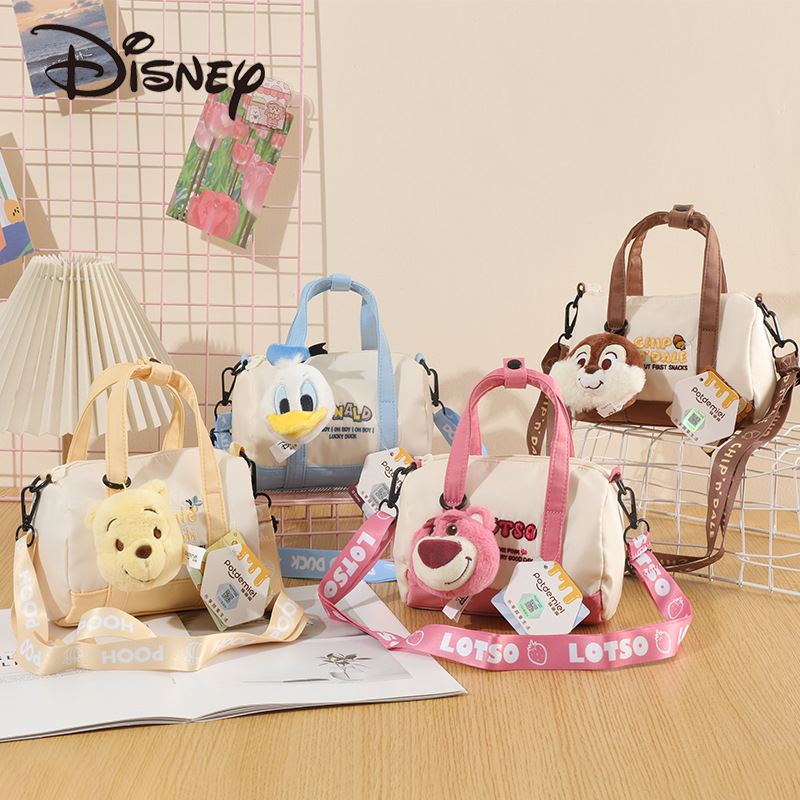 Disney Beruang stroberi asli Pooh beruang tiga mata boneka mewah tas tangan liontin kapasitas besar tas mewah