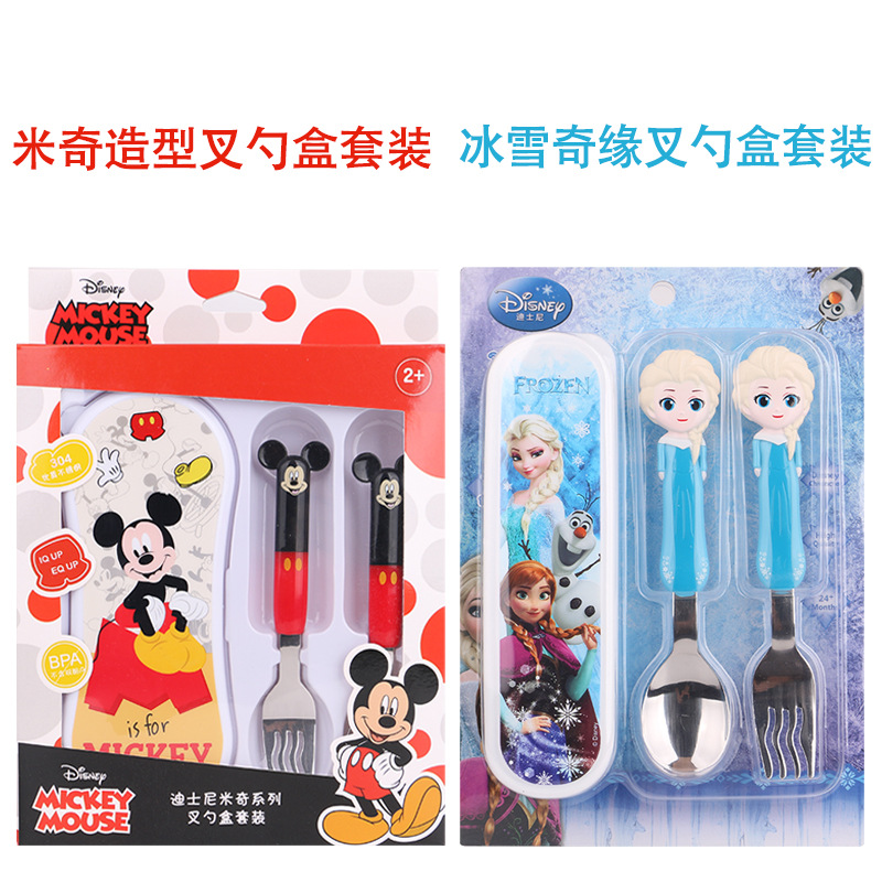 Peralatan makan bayi Disney, sendok garpu stainless steel anak-anak, sendok makan portabel, sendok latihan bayi
