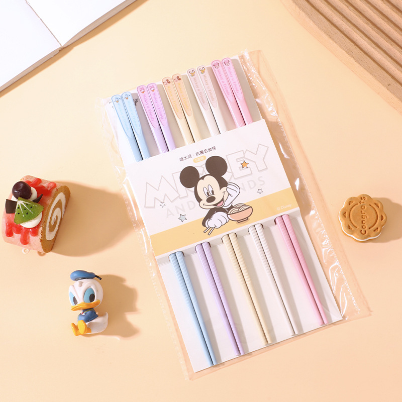 迪士尼新款米奇卡通合金筷5双装卡通图案筷子一人一双筷食品级筷