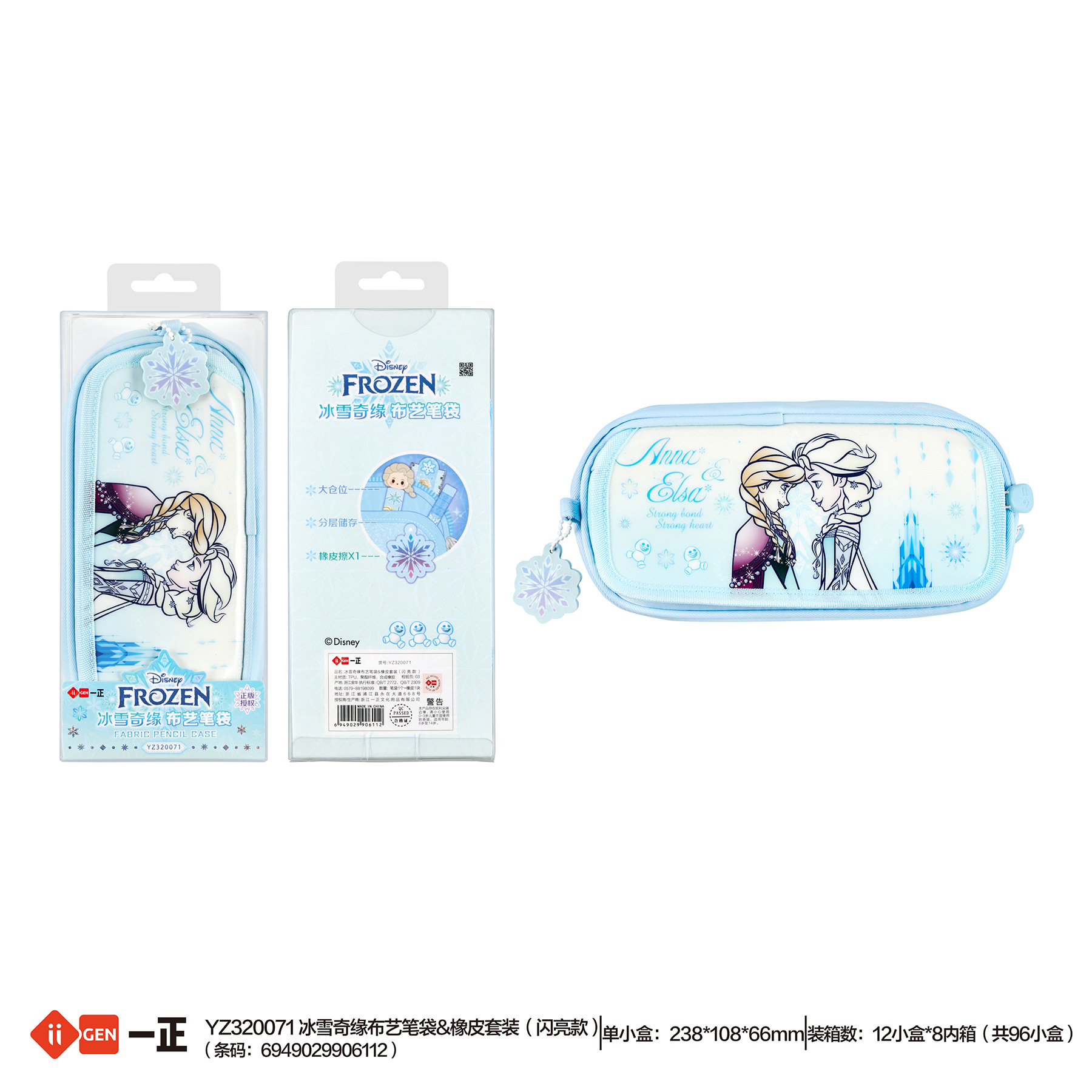 iigen一正文具迪士尼冰雪奇缘形象布艺笔袋橡皮套装儿童铅笔袋