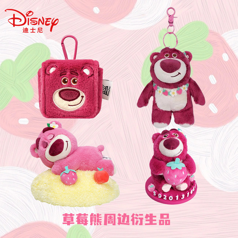 Disney asli stroberi beruang liontin mainan mewah boneka menenangkan kartun gantungan kunci liontin wanita hadiah grosir
