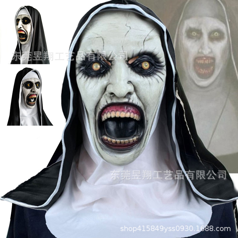 Halloween hantu 2 biarawati hantu wanita topeng lateks pesta horor scream wajah hantu alat peraga suasana menakutkan
