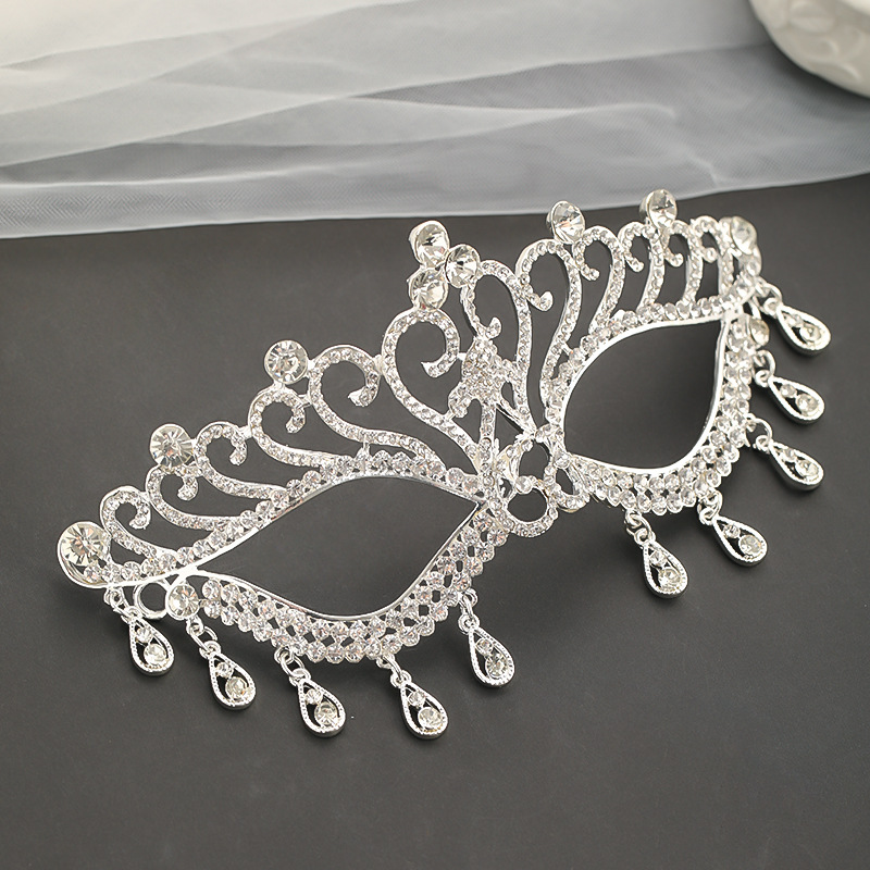 Niancanxin Niang masker kepala, hiasan kepala gaya Eropa dan Amerika, aksesori pesta pernikahan rumbai kristal berlian imitasi