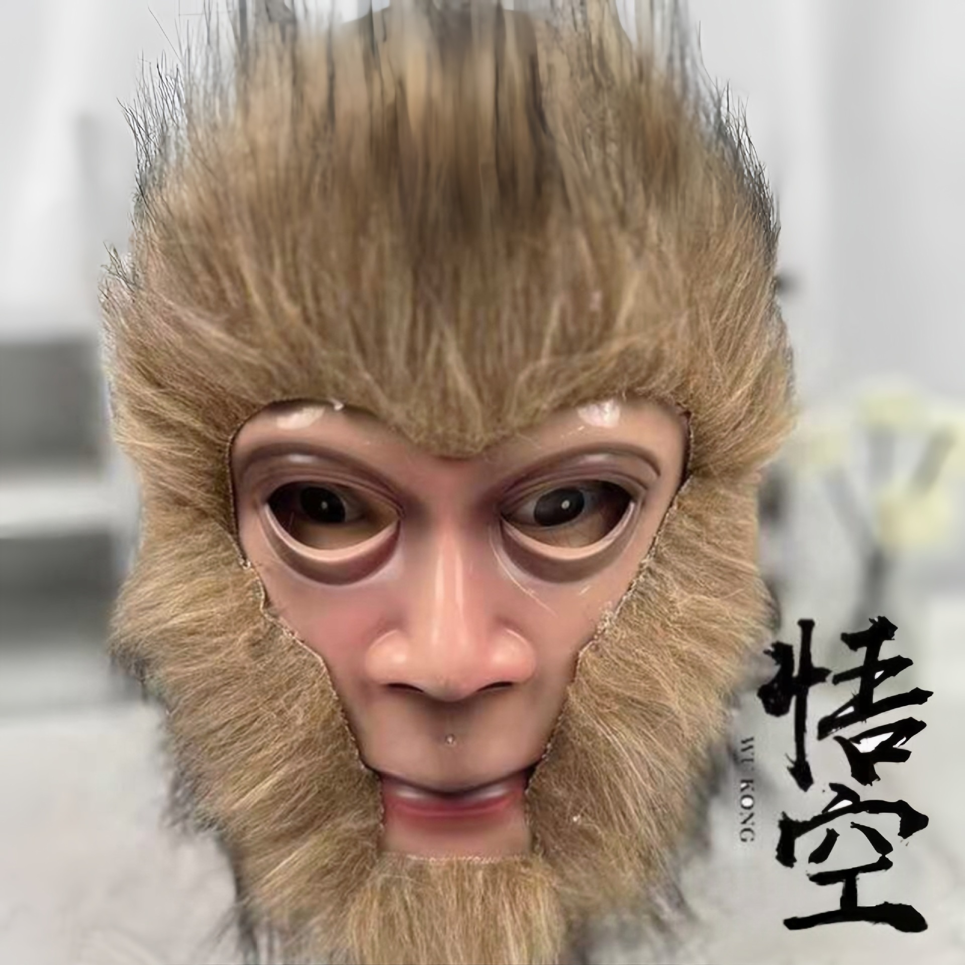 Sarung Kepala Mitos Hitam Sun Wukong Wajah Berbulu Halloween Monkey King Monkey Masker Pertunjukan Alat Peraga Foto Alat Peraga Foto