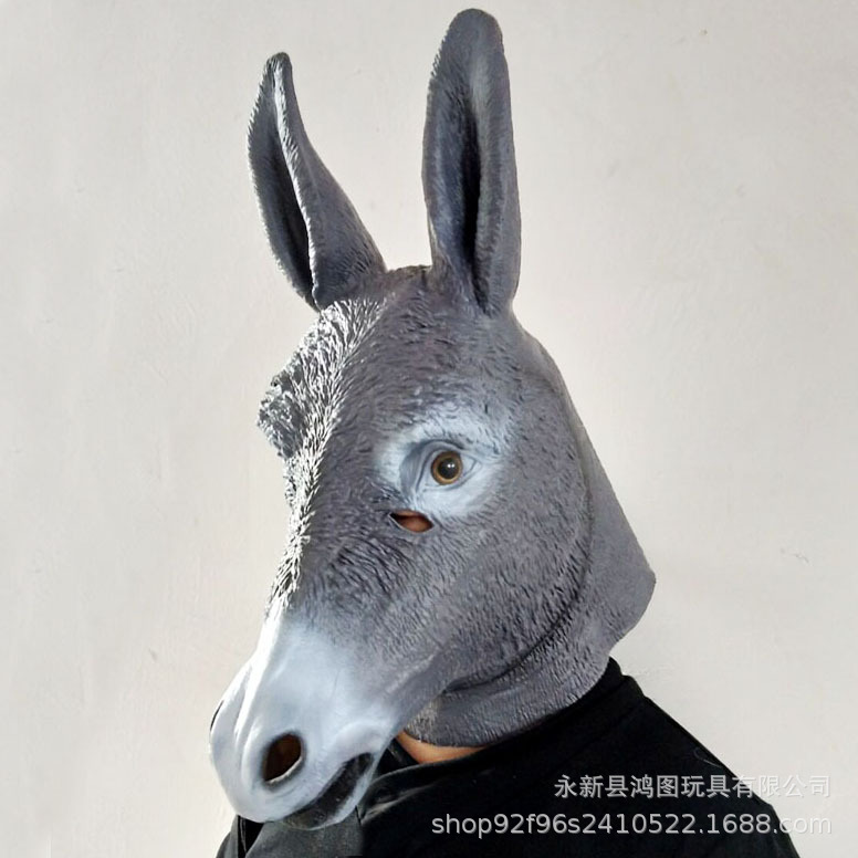 Topeng keledai penutup kepala hewan masker Halloween topeng performa pesta penutup kepala Halloween