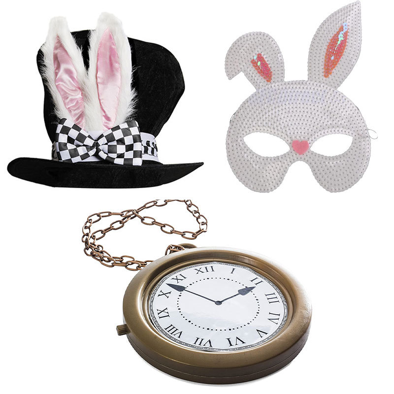 Topi Tinggi telinga kelinci Paskah, masker kelinci, jam tangan saku vintage, hiasan kepala Paskah, pakaian rias pesta