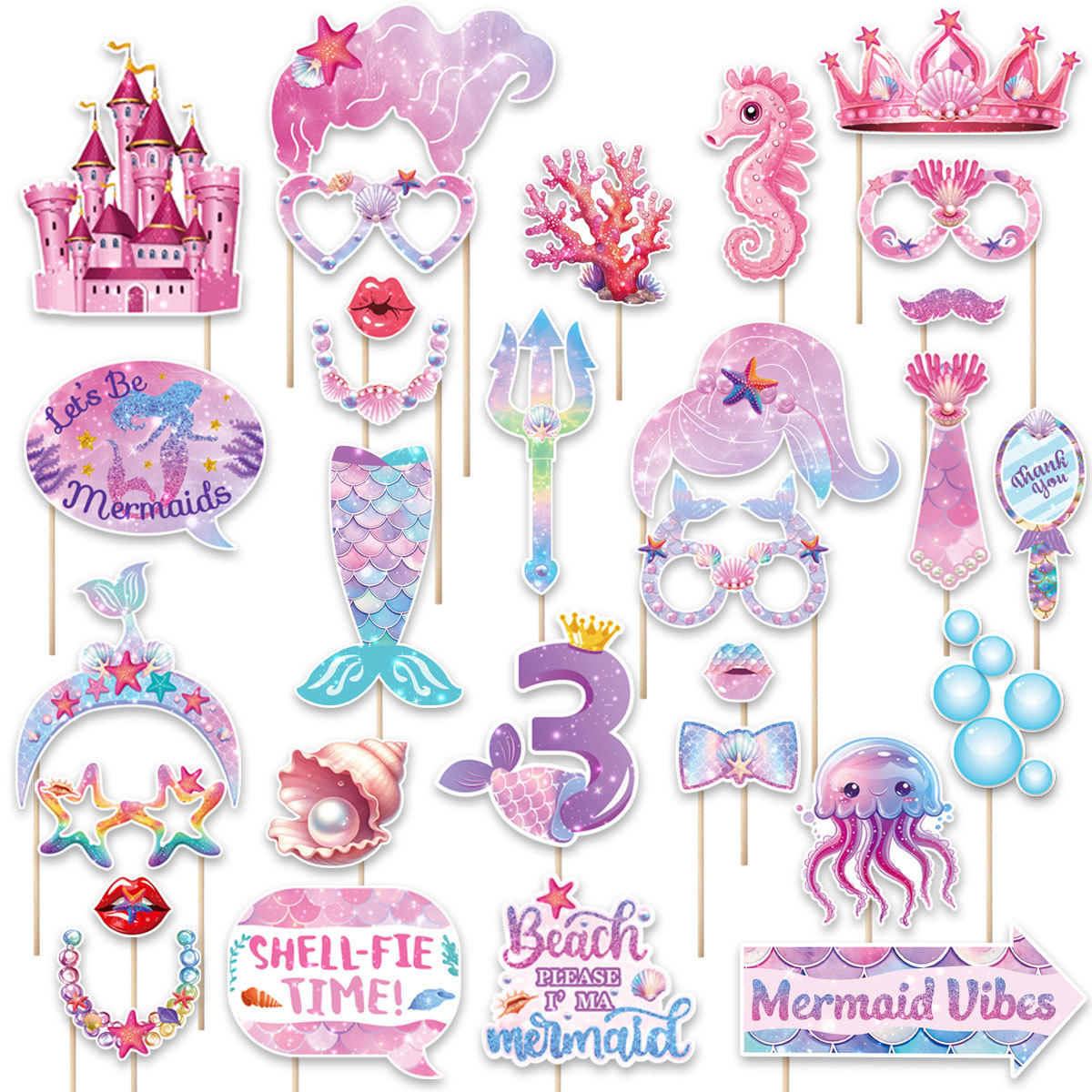 Dekorasi Pesta Putri Duyung Alat Peraga Foto Lucu Bertopeng Pesta Ulang Tahun Anak-Anak Mermaids