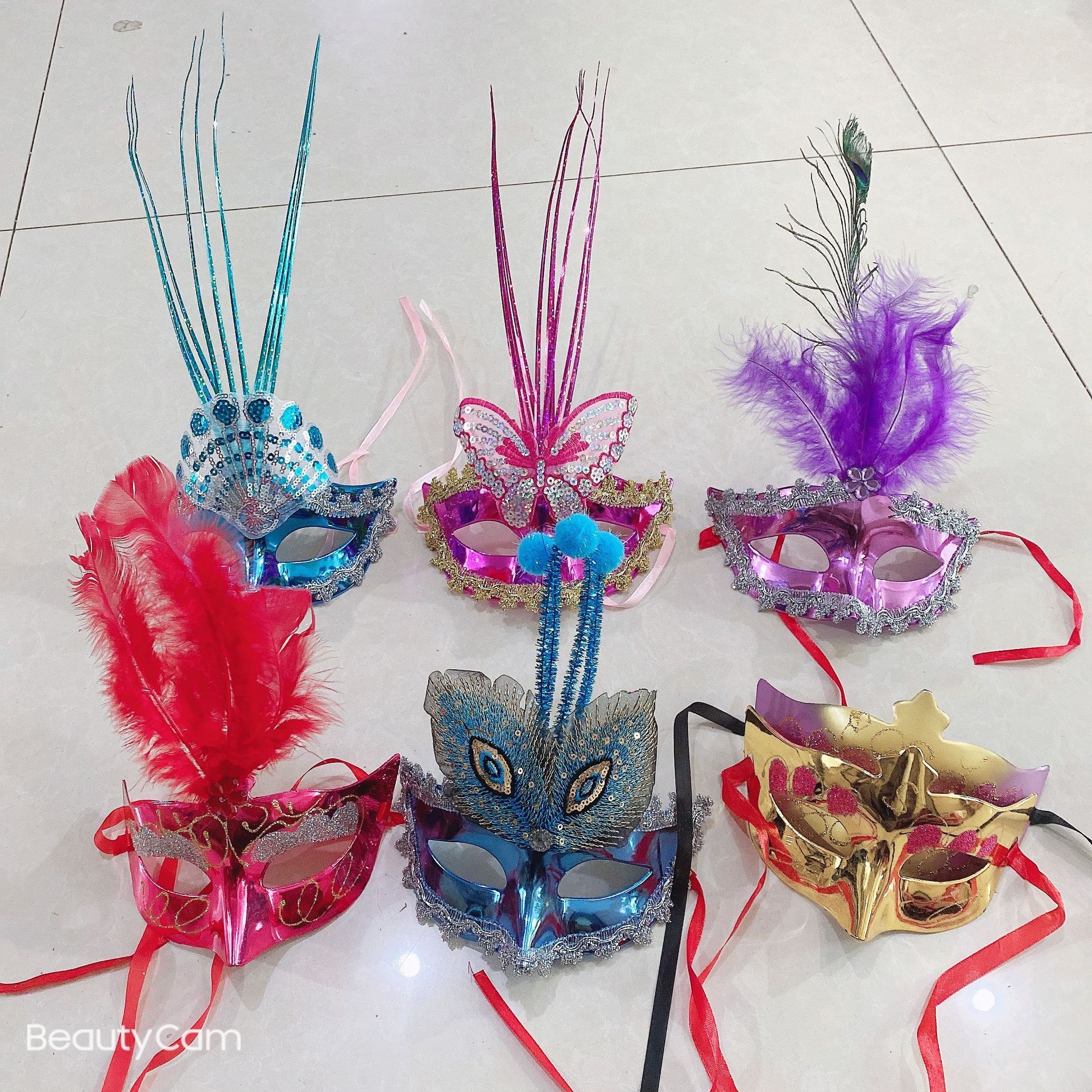 Masker bercahaya gaun mewah bola topeng bulu pesta Halloween Natal topeng kartun hujan sutra grosir