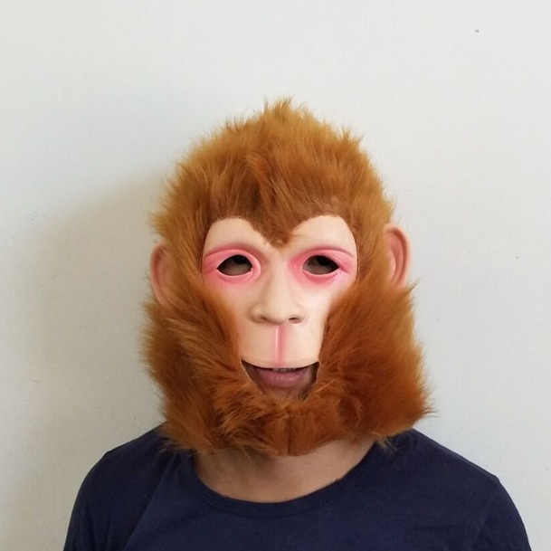 Masker Halloween tutup kepala monyet, hewan orangutan peralatan kepala properti Halloween
