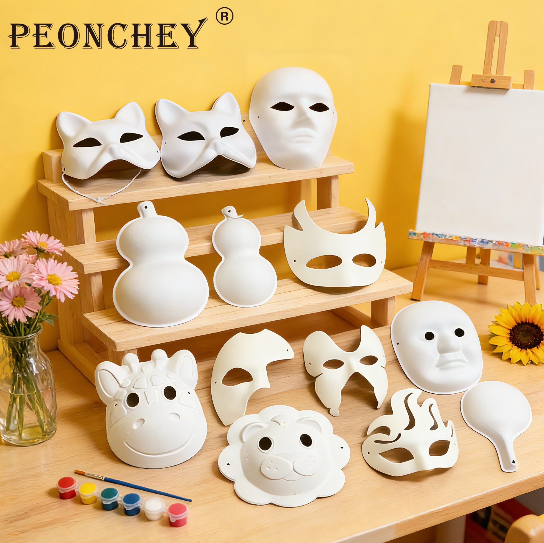 Halloween anak-anak kosong dilukis tangan masker grafiti diy anak-anak putih Embrio buatan tangan hewan kartun masker bubur kertas
