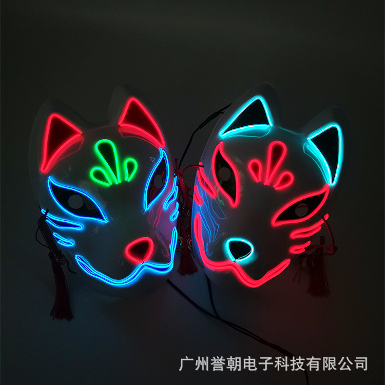 Topeng rubah setengah wajah bercahaya TikTok gaya yang sama topeng peri rubah Jepang topeng Halloween topeng bercahaya