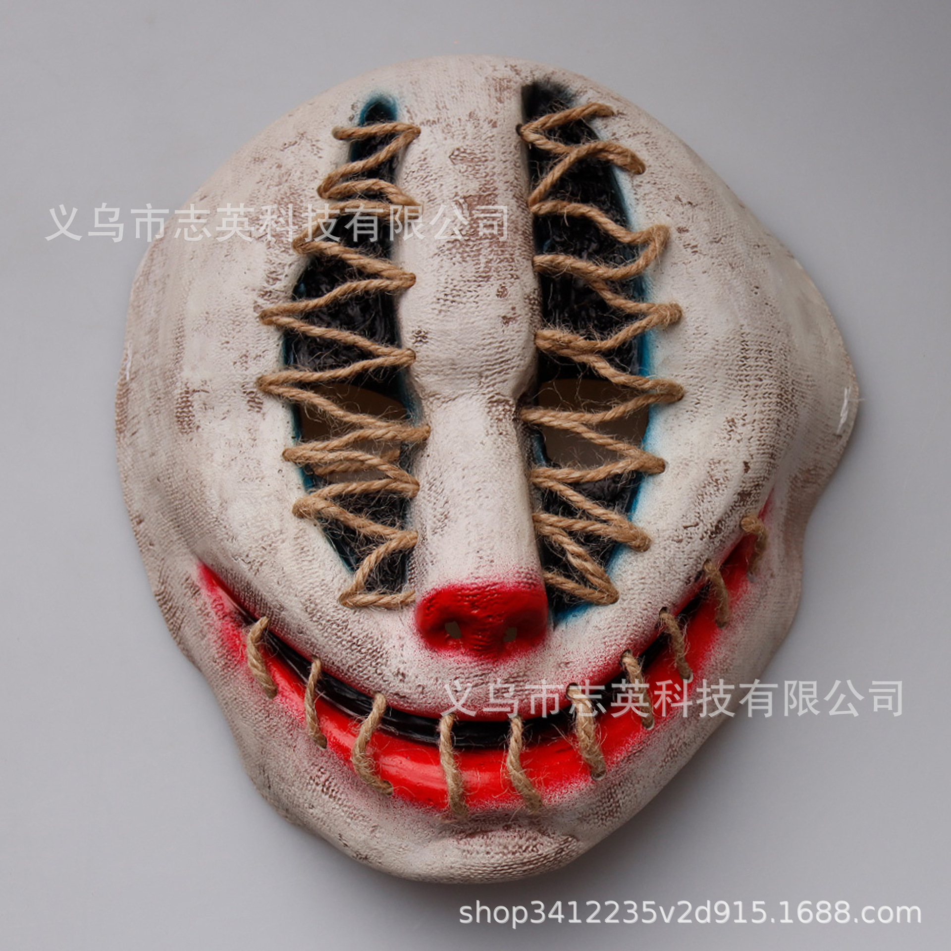 Masker badut jahitan buatan tangan, masker pembunuh senyum, masker bola Halloween, properti gaun CO pesta