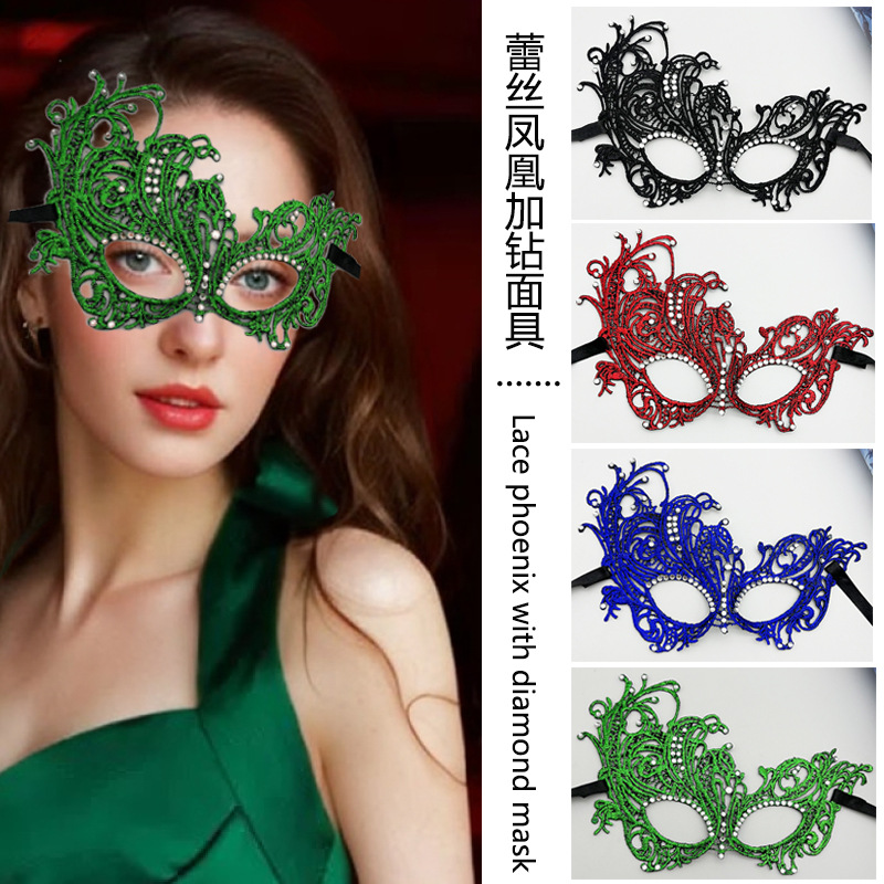 Topeng renda topeng setengah wajah plus berlian Halloween cosplay pesta topeng mata seksi perlengkapan festival wanita