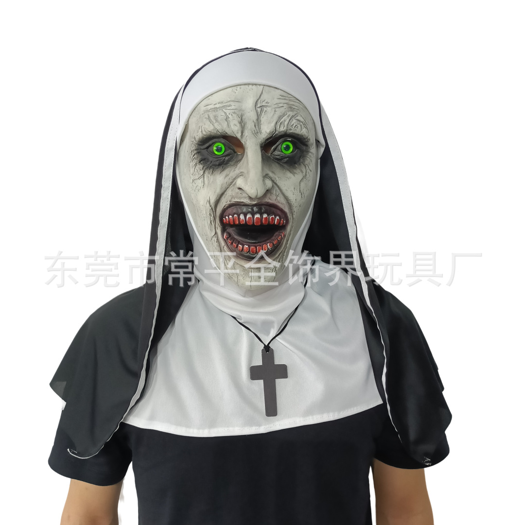 Soul 2 biarawati 2 Masker rias wajah Halloween topeng hantu wajah lateks menakutkan tutup kepala biarpun biarawati