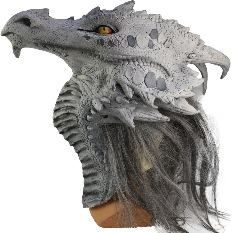 Masker kepala dapat digerakkan simulasi Halloween, penutup kepala lateks dinosaurus mulut binatang