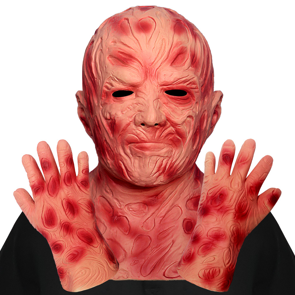 Topeng wajah hantu Freddy yang menakutkan, sarung tangan, pesta topeng, topeng siaran langsung lintas batas, properti lelucon pesta Halloween