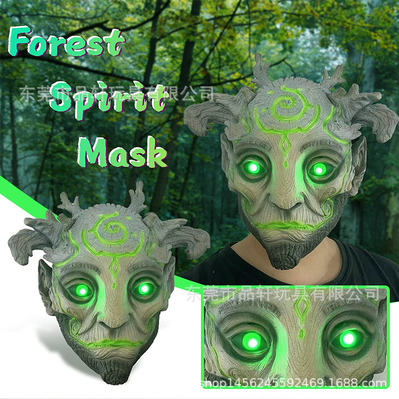 Halloween topeng lateks pria tua elf hijau perdagangan luar negeri topeng elf hutan penutup kepala alat peraga pesta topeng