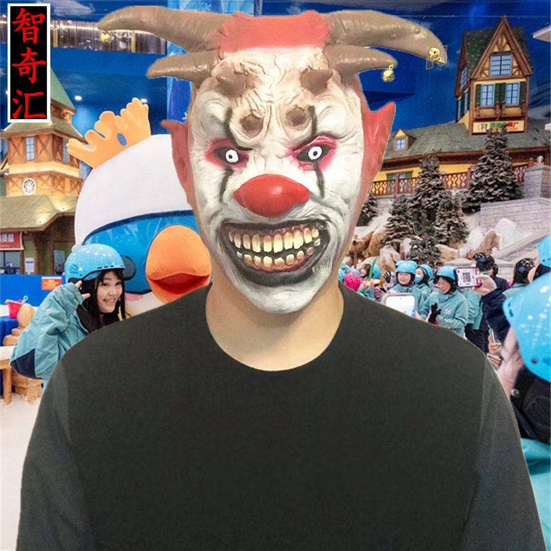 Bell masker badut Halloween lateks badut penutup kepala lucu alat peraga pesta karnaval topeng performa grosir