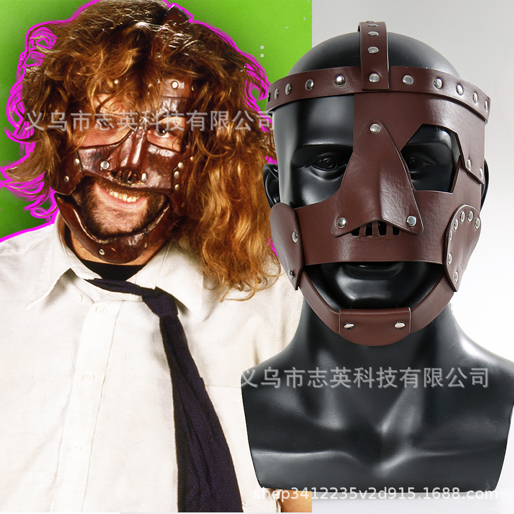 Topeng kulit micfoley WWE ukuran dapat diatur Mick Foley penutup kepala properti topeng Halloween