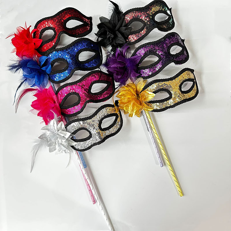 Halloween Masker Setengah Wajah Wanita Pesta Masquerade Genggam Renda Tali Bunga Bulu Alat Peraga Pertunjukan Anak-Anak Dewasa
