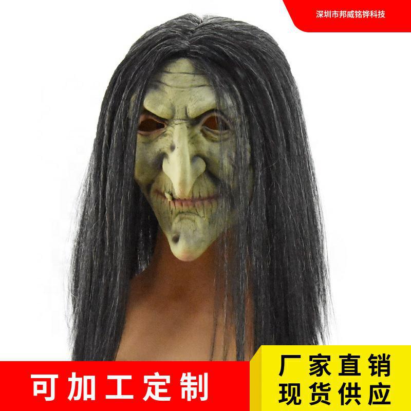 Topeng penyihir horor Halloween tutup kepala wig berkuda merah kecil masker penyihir topeng tutup kepala lateks nenek