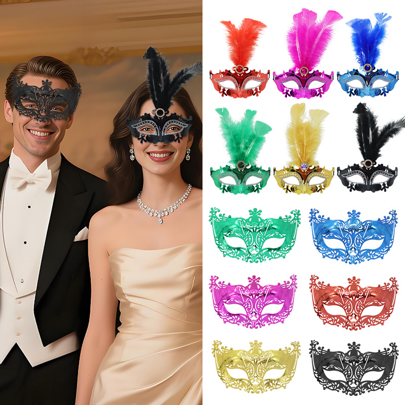 Halloween Baru Pasangan Elegan Bubuk Berlapis Bulu Setengah Wajah Topeng Seksi Masquerade Venice