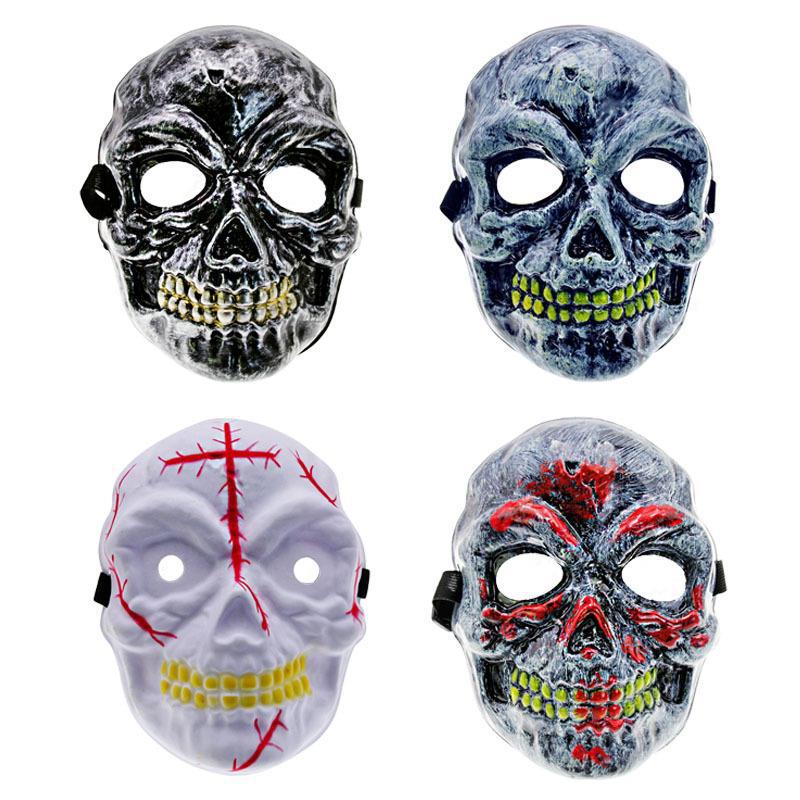 Lampu lengket topeng PVC tengkorak hantu horor Halloween topeng kepala hantu berdarah hitam topeng bercahaya